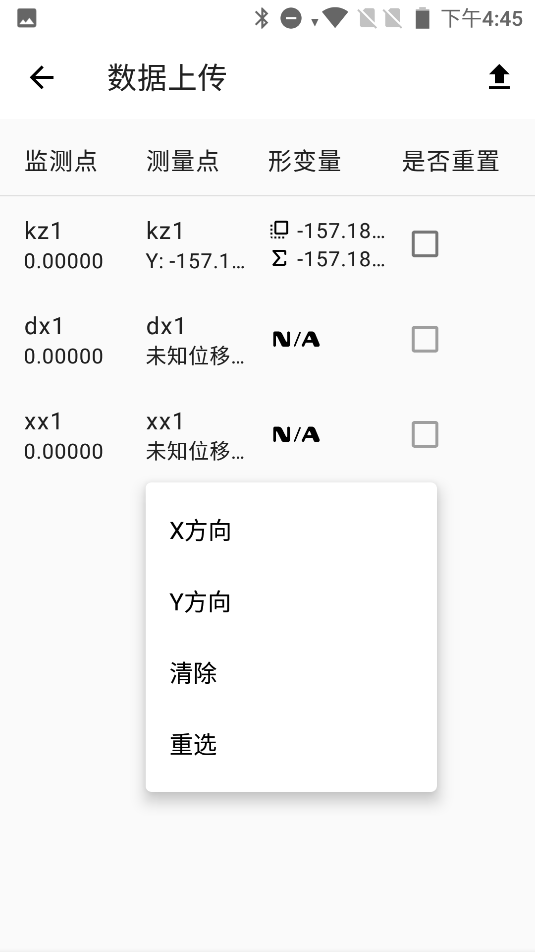 用户需要在水平位移数据列表界面点按一个数据项,进入水平位移数据上传界面。