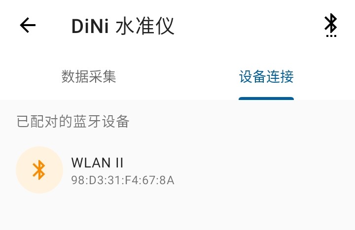 - 从系统的“蓝牙配对”界面完成配对后,再回退到 App,可见“设备连接”界面上新增刚才新配对的蓝牙设备项