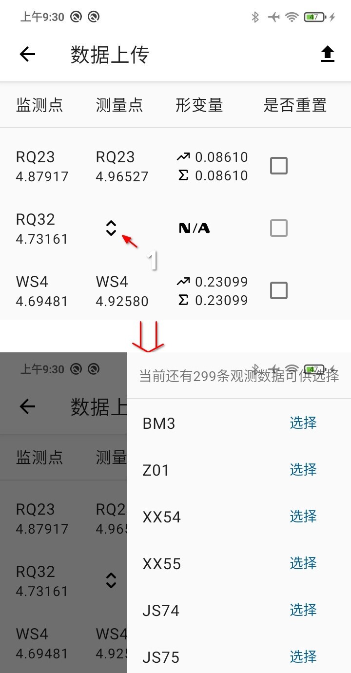 监测点点名与当前的测量点点名匹配不佳时,用户可选择通过界面交互进行手动匹配测量点。