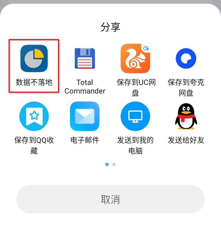 - 在分享列表中选择“数据不落地”,而后在弹出的窗口中点按“导入”
