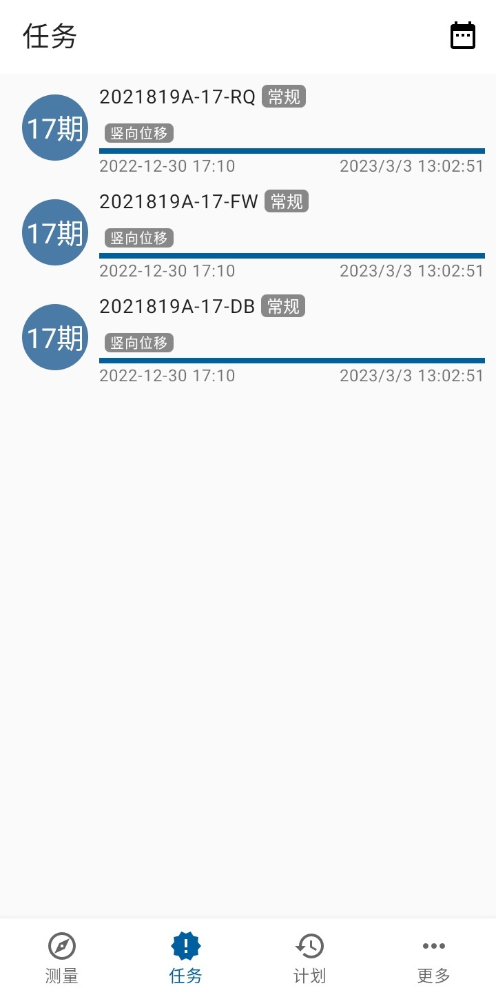 导航至主页的“任务”分页,点按一个任务项进入到相对应的测量项目数据采集界面